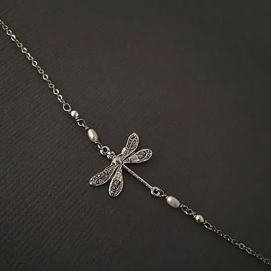 Silver Dragonfly Anklet With Pearl design, making it different and unique made with high-quality materials, ensuring long-lasting durability